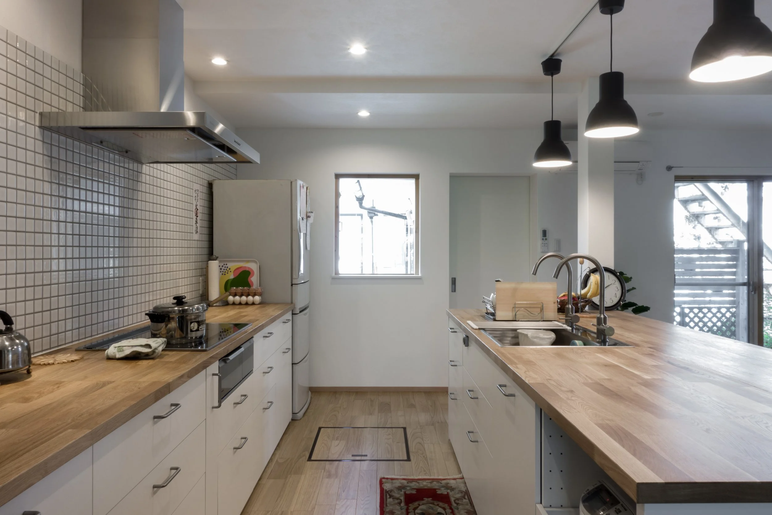 大工さんが設計施行して下さった家の改修。キッチンと水回りを改修し、明るく暮らせるようにしたい、ということでスタート。